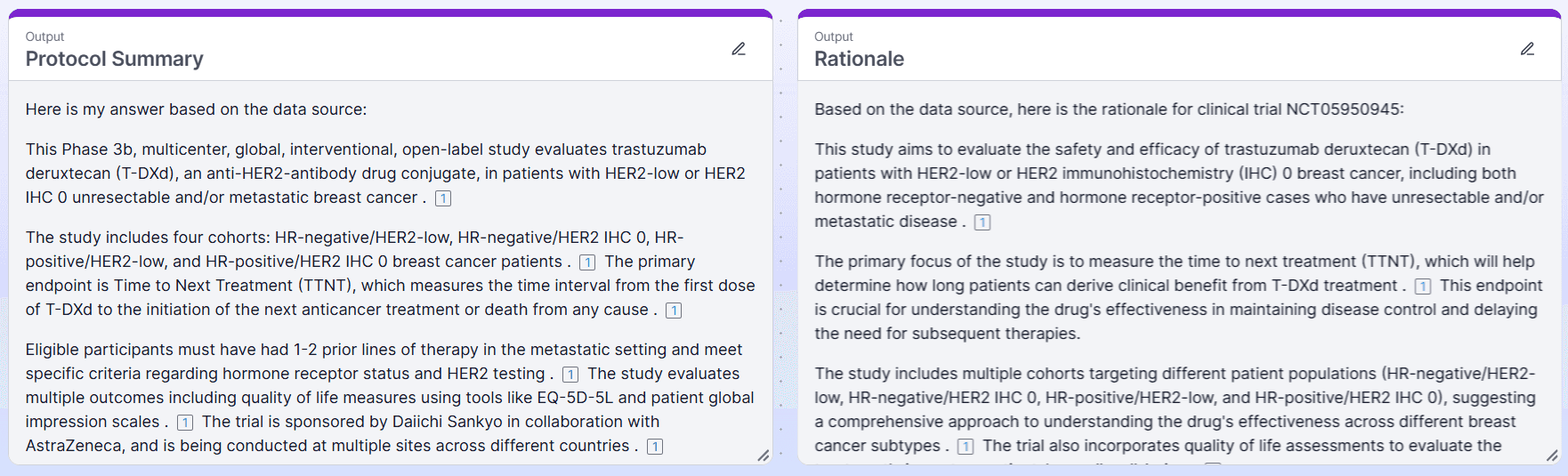 Traditionally, this process would have required detailed business requirements, extensive documentation review, collaboration between domain specialists, and significant time. But with Amazon Q Business, workshop participants described the requirements using text-based prompts, referenced a set of previous clinical studies, and the system generated a clinical protocol specification on the fly.