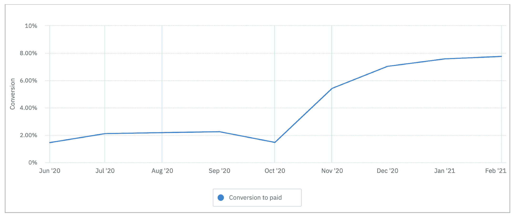 An example from the leisure sector: this company tested an alternative purchase flow for its services. The result - conversion increased 4x from around 2% to 8% over 4 months.